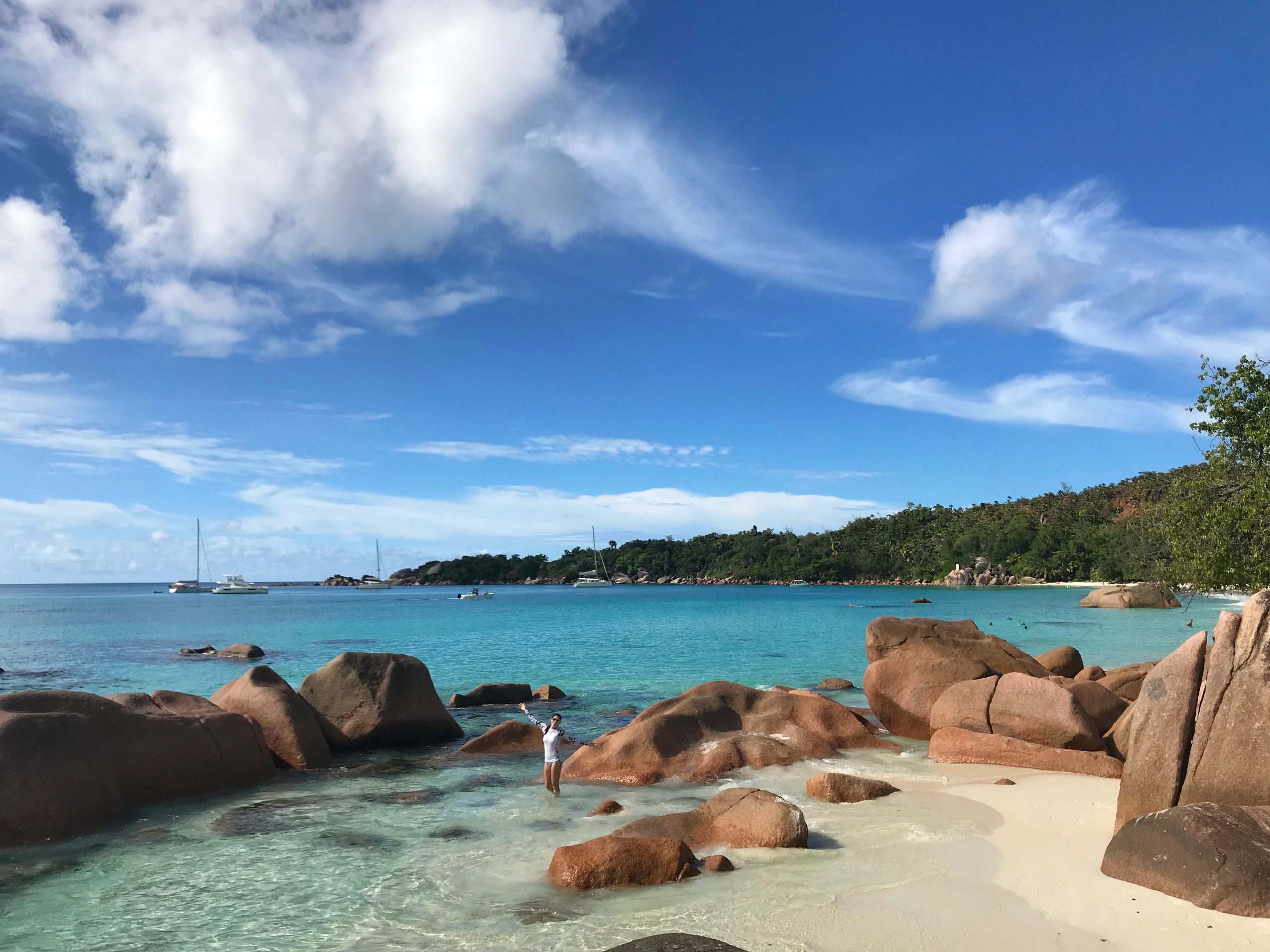 Os demais trajetos (Praslin – La Digue e La Digue – Mahé), fizemos de barco, também são rápidos e com preços bem acessíveis. Para conferir todos os trajetos, preços e fazer reserva dos barcos, acesse o site www.seychellesbookings.com.