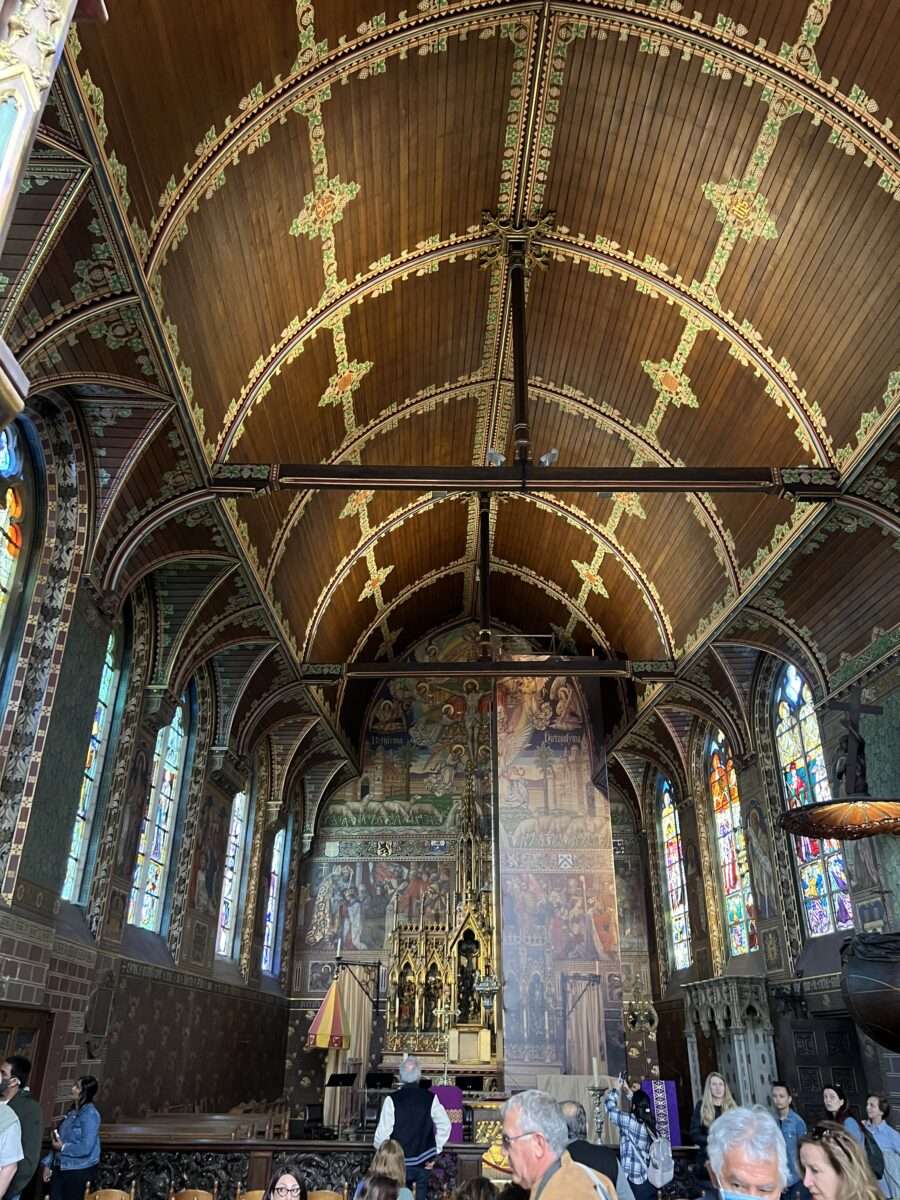 O edifício é bem robusto e pode ser visto de longe. Dentro, você verá muitos detalhes nos vitrais, obras de arte, tapetes gigantescos pendurados e alguns artefatos originais dessa antiga igreja.