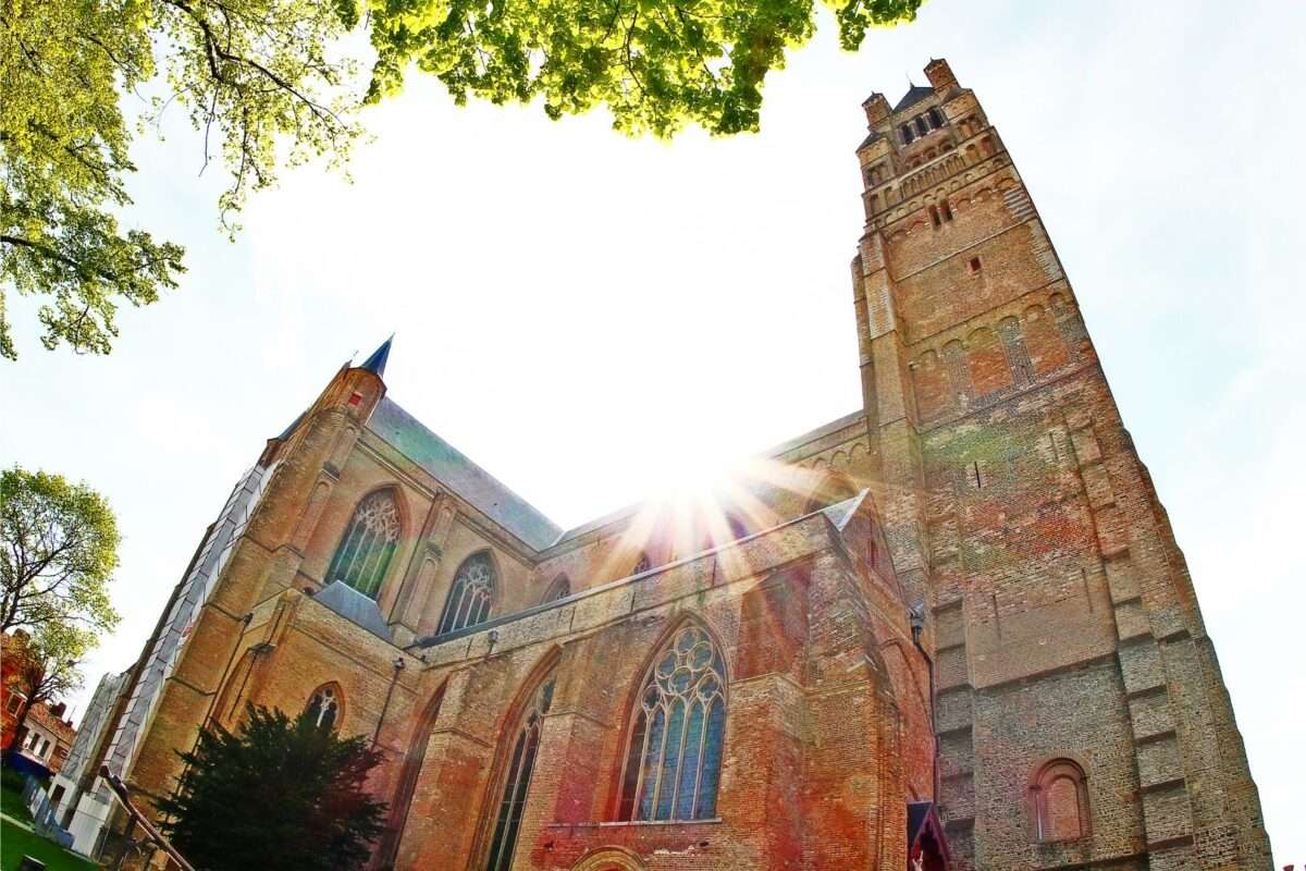 A Igreja de Nossa Senhora conta com a segunda torre de tijolos mais alta do mundo! São 115 metros para você ter outra vista incrível da cidade de Bruges.