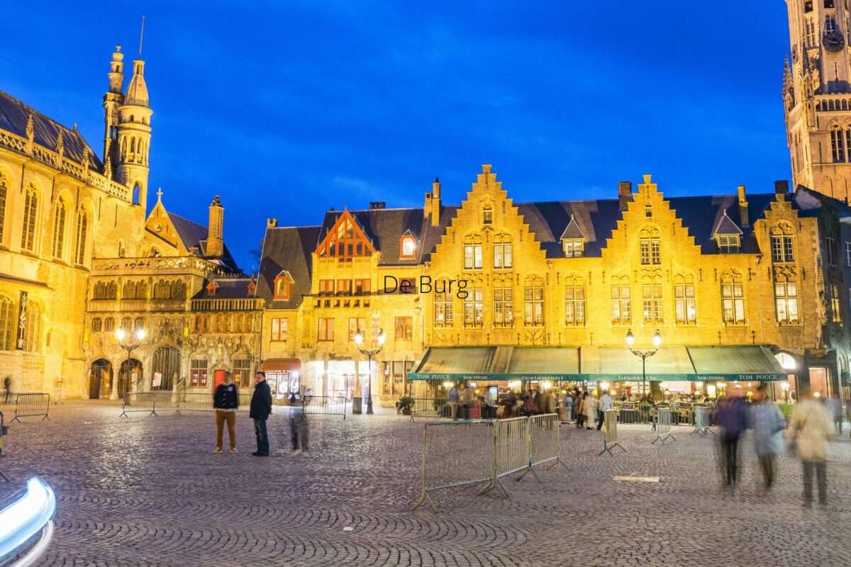 O De Burg é uma praça que concentra algum monumentos importantes como a prefeitura, câmara de vereadores e a Basílica do Sangue Sagrado. Além disso, também há um restaurantes ao seu redor e é muito comum haverem show em palcos colocados no centro da praça.